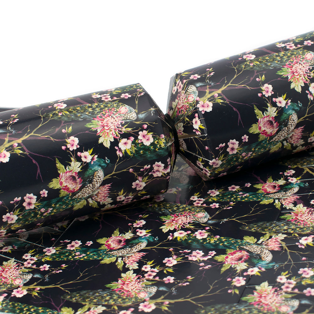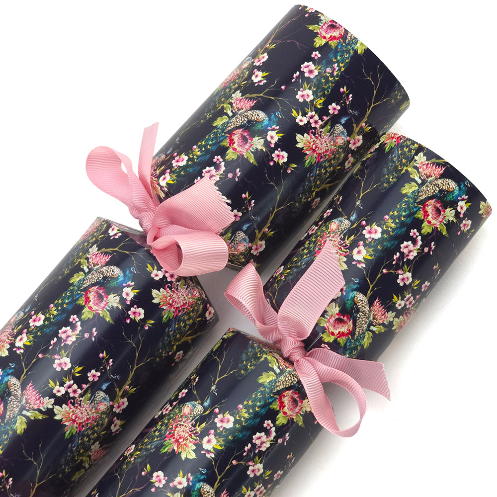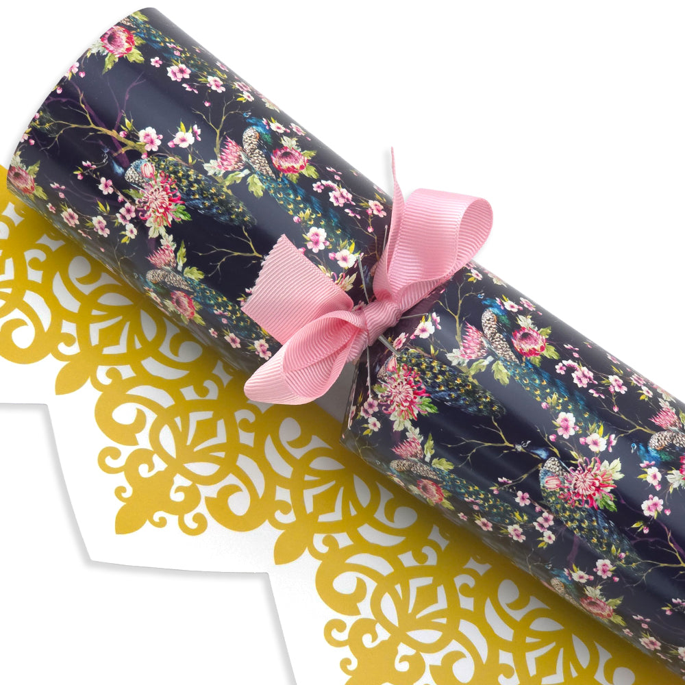Oriental Peacock design cracker making kits, perfect for your festive celebrations and birthdays.