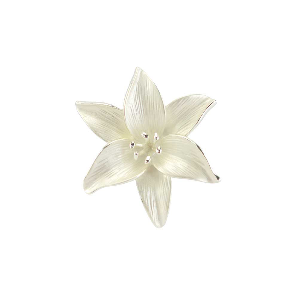 Lily Flower Brooch | Pearlescent White | 3.8cm Wide | Mini Gift | Cracker Filler