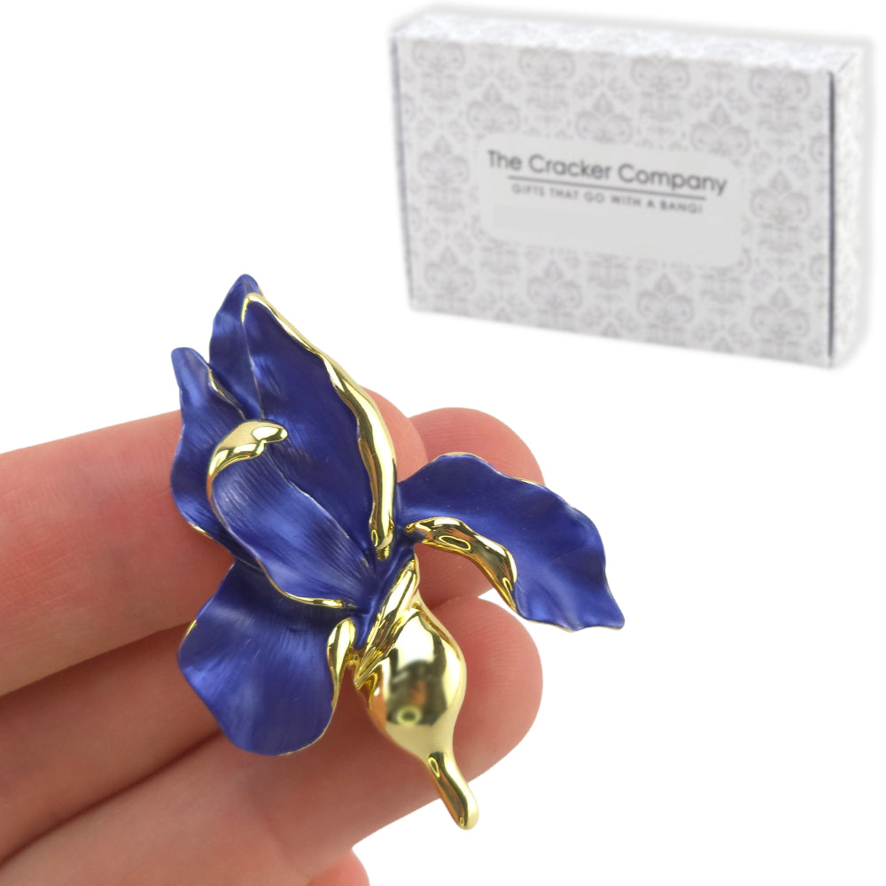 Blue & Gold Iris Brooch | 5cm Tall | Little Gift for Ladies | Cracker Filler